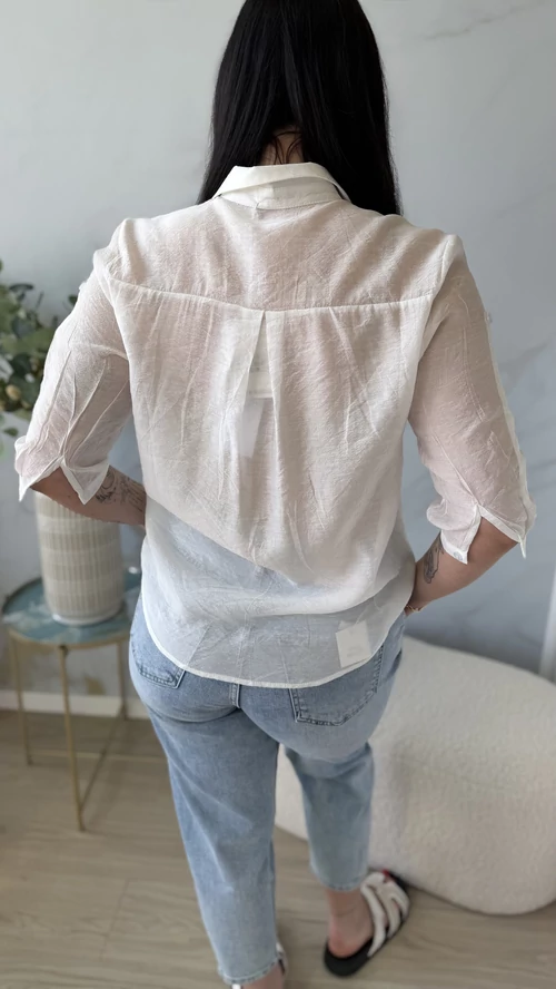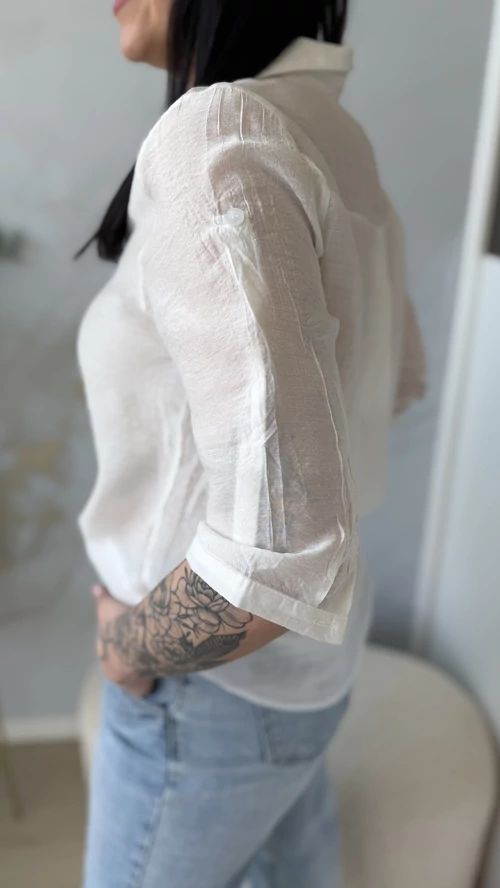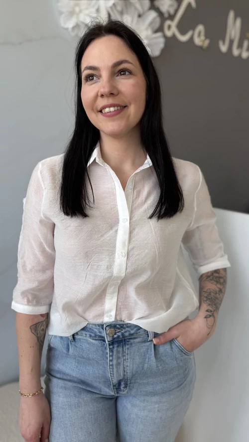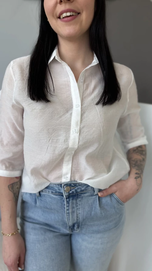 Ez a 3/4-es ujjú lenge ing tökéletes választás a tavaszi és nyári időszakra. Vékonyabb, kissé áttetsző anyagból készült, így igazán könnyed és légies viseletet biztosít a melegebb napokon. Az ing ujjai 3/4-es hosszúságúak, melyek felgombolhatók, így az időjárás és a stílus szerint variálhatók. Kényelmes szabása révén egész napos viseletre is ideális, miközben elegáns és friss megjelenést kölcsönöz viselőjének. Ez a kellemes, könnyű anyagú ing szettként vagy önálló ruhadarabként is remekül funkcionál.