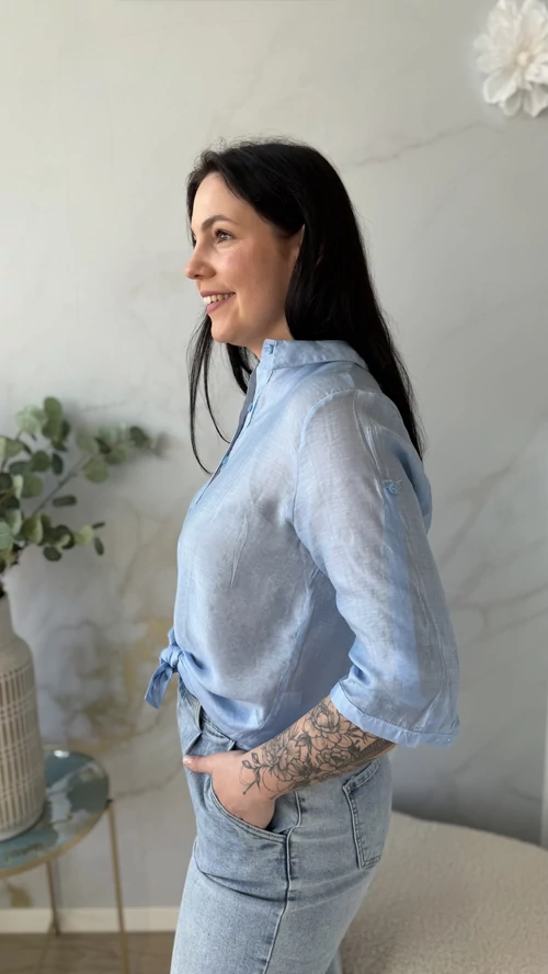 Ez a 3/4-es ujjú lenge ing tökéletes választás a tavaszi és nyári időszakra. Vékonyabb, kissé áttetsző anyagból készült, így igazán könnyed és légies viseletet biztosít a melegebb napokon. Az ing ujjai 3/4-es hosszúságúak, melyek felgombolhatók, így az időjárás és a stílus szerint variálhatók. Kényelmes szabása révén egész napos viseletre is ideális, miközben elegáns és friss megjelenést kölcsönöz viselőjének. Ez a kellemes, könnyű anyagú ing szettként vagy önálló ruhadarabként is remekül funkcionál.