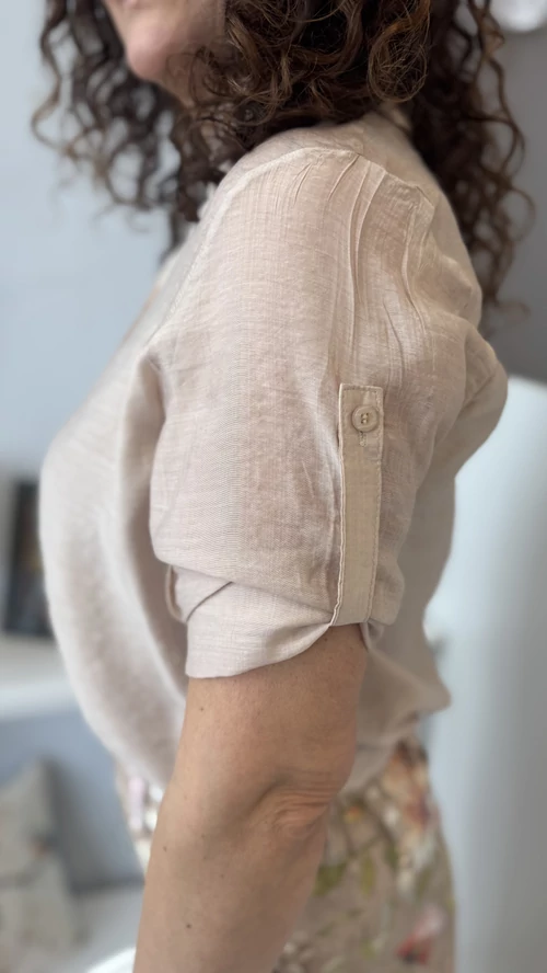 Ez a 3/4-es ujjú lenge ing tökéletes választás a tavaszi és nyári időszakra. Vékonyabb, kissé áttetsző anyagból készült, így igazán könnyed és légies viseletet biztosít a melegebb napokon. Az ing ujjai 3/4-es hosszúságúak, melyek felgombolhatók, így az időjárás és a stílus szerint variálhatók. Kényelmes szabása révén egész napos viseletre is ideális, miközben elegáns és friss megjelenést kölcsönöz viselőjének. Ez a kellemes, könnyű anyagú ing szettként vagy önálló ruhadarabként is remekül funkcionál.