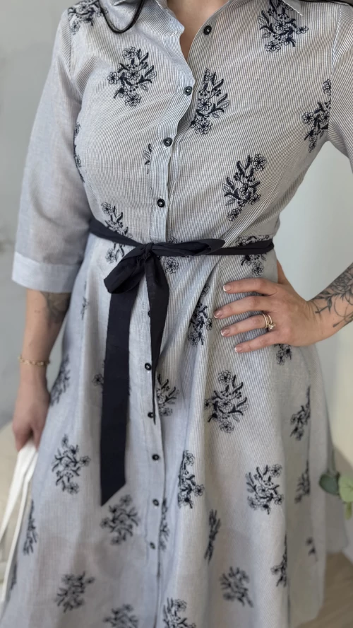 Fedezd fel ezt a virághímzéses ruhát, amely tökéletes választás könnyed, mégis elegáns megjelenéshez! A világoskék árnyalatban készült darab frissességet és lendületet sugároz, miközben a finom csíkos mintázat modern stílust kölcsönöz neki. Anyaga nem elasztikus. A ruha különleges részlete a gondosan kidolgozott virághímzés, amely nőies és egyedi jelleget ad az összhatásnak. Kényelmes viseletet biztosít egész napra, legyen szó akár egy városi sétáról vagy baráti összejövetelről. Praktikus szabásának köszönhetően könnyen kombinálhatod a kedvenc kiegészítőiddel és cipőiddel is. Lépj ki a hétköznapokból stílusosan, és élvezd a csíkos virághímzéses ruha nyújtotta önbizalmat!