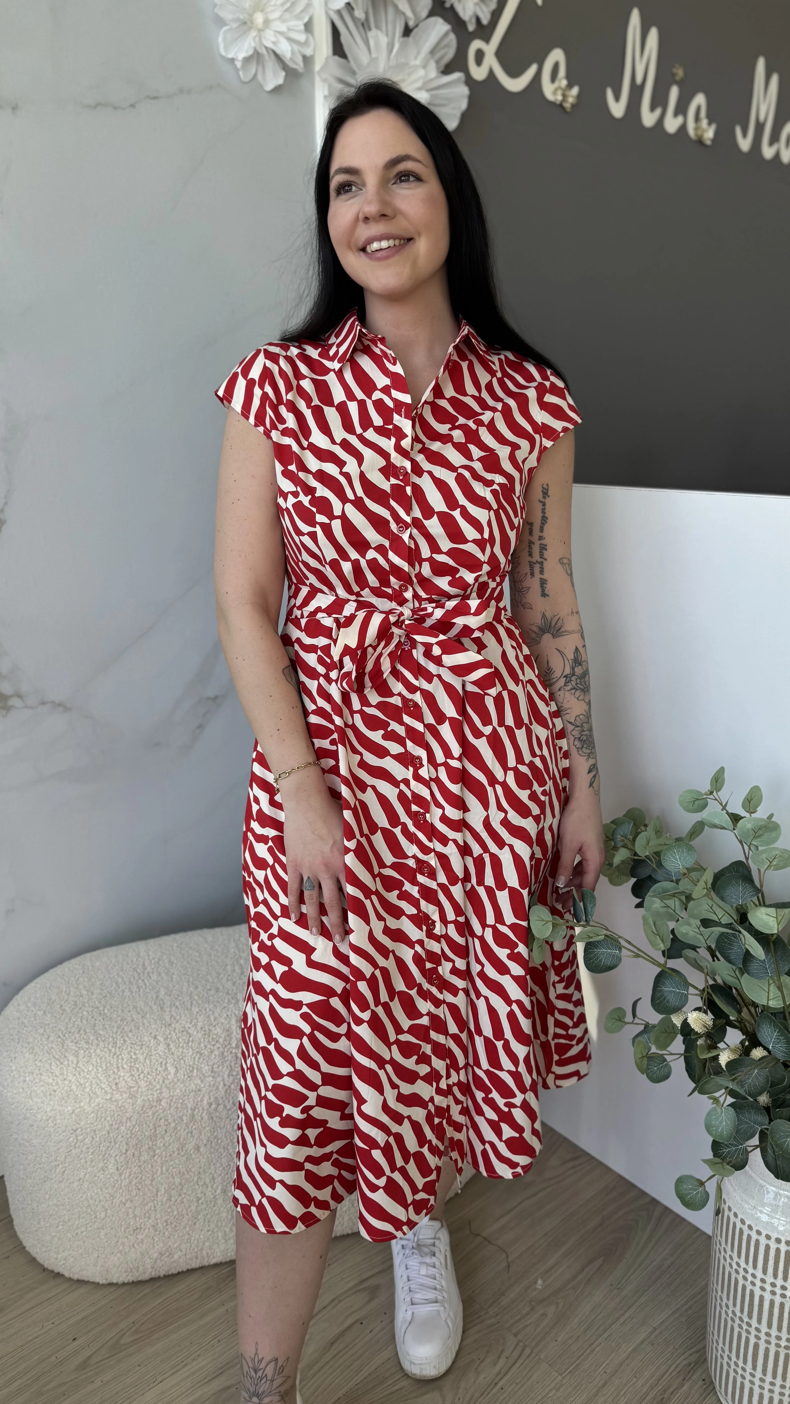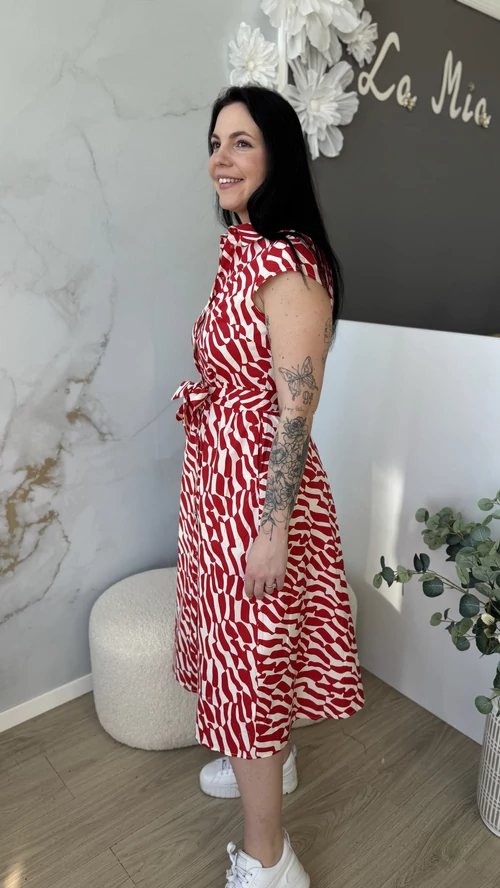 Stílusos és kényelmes választás a mindennapokra! Ez a női ruha élénk piros színben elérhető, amely feldobja megjelenésedet, legyen szó akár egy hétköznapi sétáról vagy különleges alkalomról. Puha, légáteresztő, pamutvászon, enyhén elasztikus anyagból készült, így egész nap kellemes viseletet biztosít. A szabása modern és nőies, kiemeli az alakot, miközben elegendő mozgásteret nyújt. Egyszerűen kombinálható különböző kiegészítőkkel, tökéletes darab a ruhatáradban. Válaszd ezt a ruhát, ha stílusos megjelenésre és kényelmes viseletre vágysz!