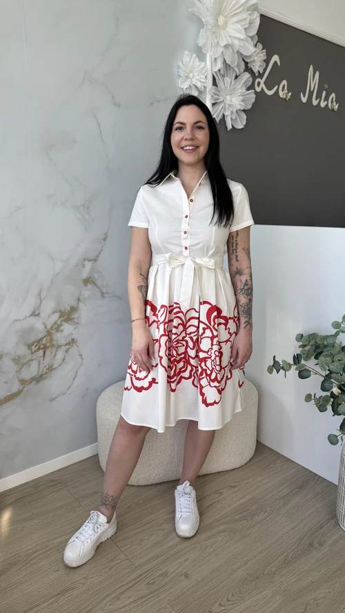 Fedezd fel a SweetM női ruha tökéletes egyensúlyát a kényelem és a stílus között! Ez a gyönyörű darab fehér alapon élénk piros részletekkel készült, így garantáltan feldobja a megjelenésedet bármilyen alkalomra. Puha, könnyű anyaga kellemes viseletet biztosít egész napra, miközben az igényes szabásvonala kiemeli az alakodat. A SweetM ruha ideális választás, ha egy nőies, de mégis laza outfitet keresel. Ne hagyd ki, légy te is a stílusos megjelenés mestere!