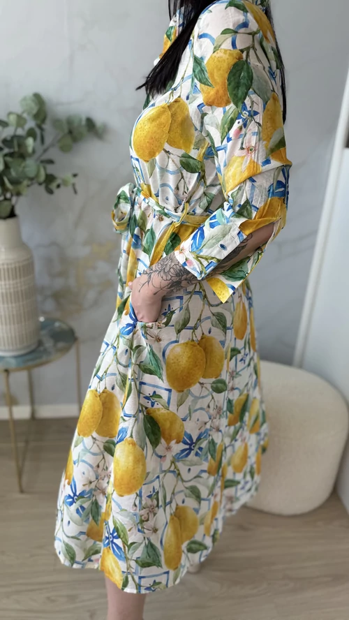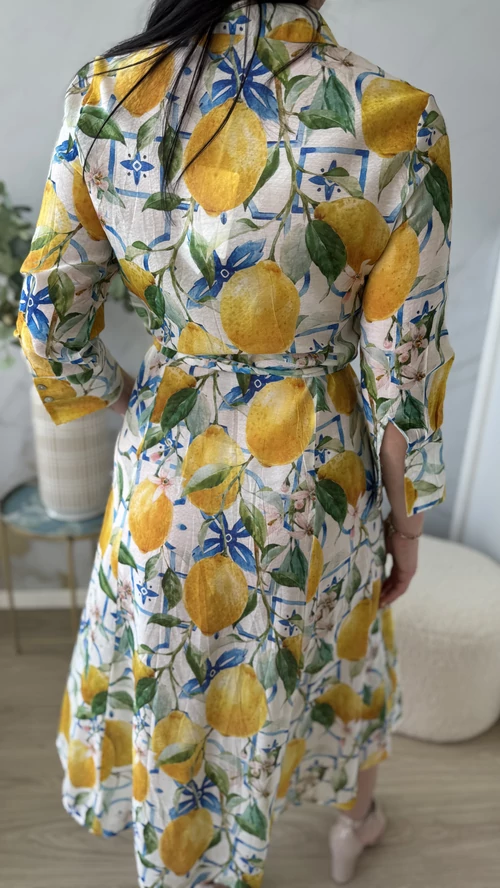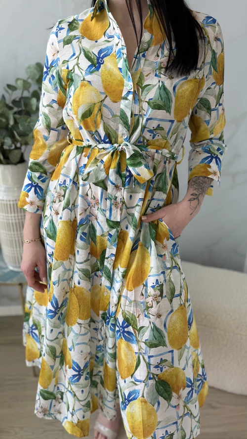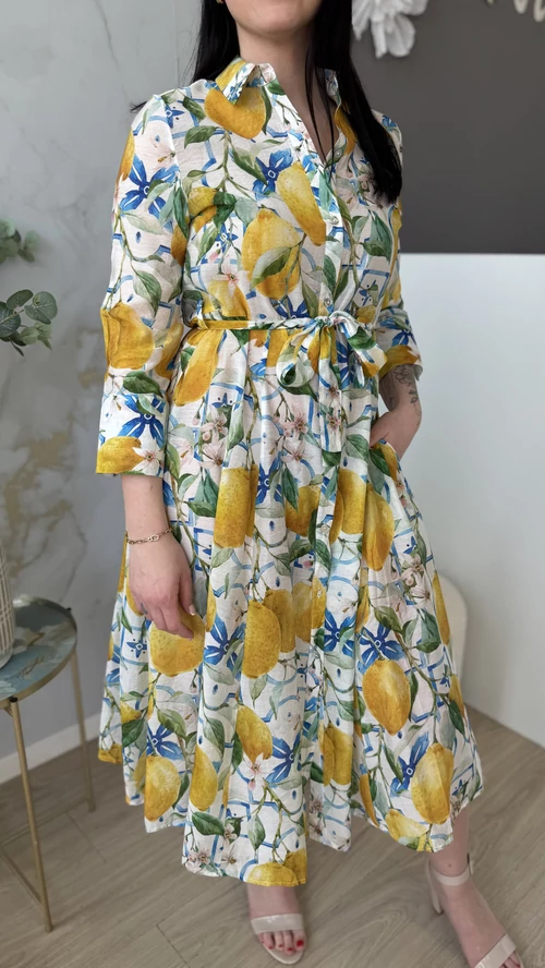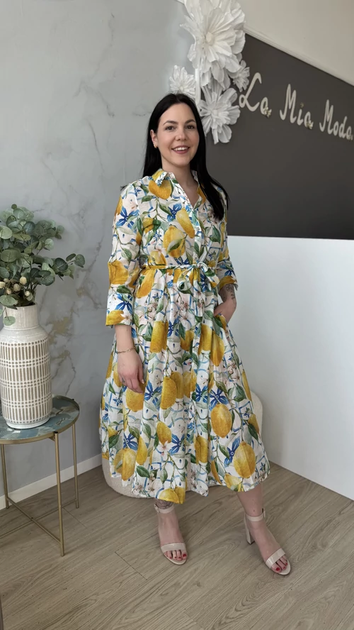 Ez a SweetM női ruha tökéletes választás a tavaszi és nyári napokra. Fehér alapon színes mintákkal díszített, mely vidám és egyedi megjelenést kölcsönöz viselőjének. A ruha gombos kialakítású, amely praktikus és stílusos egyben. A derékrésznél saját övvel szabható testre, így kiemeli az alakot és kényelmes viseletet biztosít. Galléros, hosszú ujjú fazonja légiesen könnyű, vékony anyagból készült, így ideális választás a melegebb időszakokra. Válaszd a SweetM női ruhát, ha egy könnyed, elegáns és színpompás ruhadarabra van szükséged!