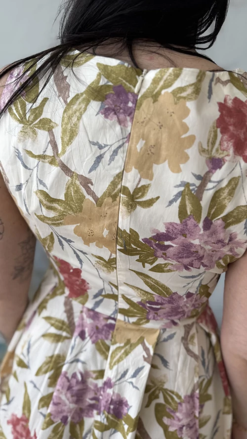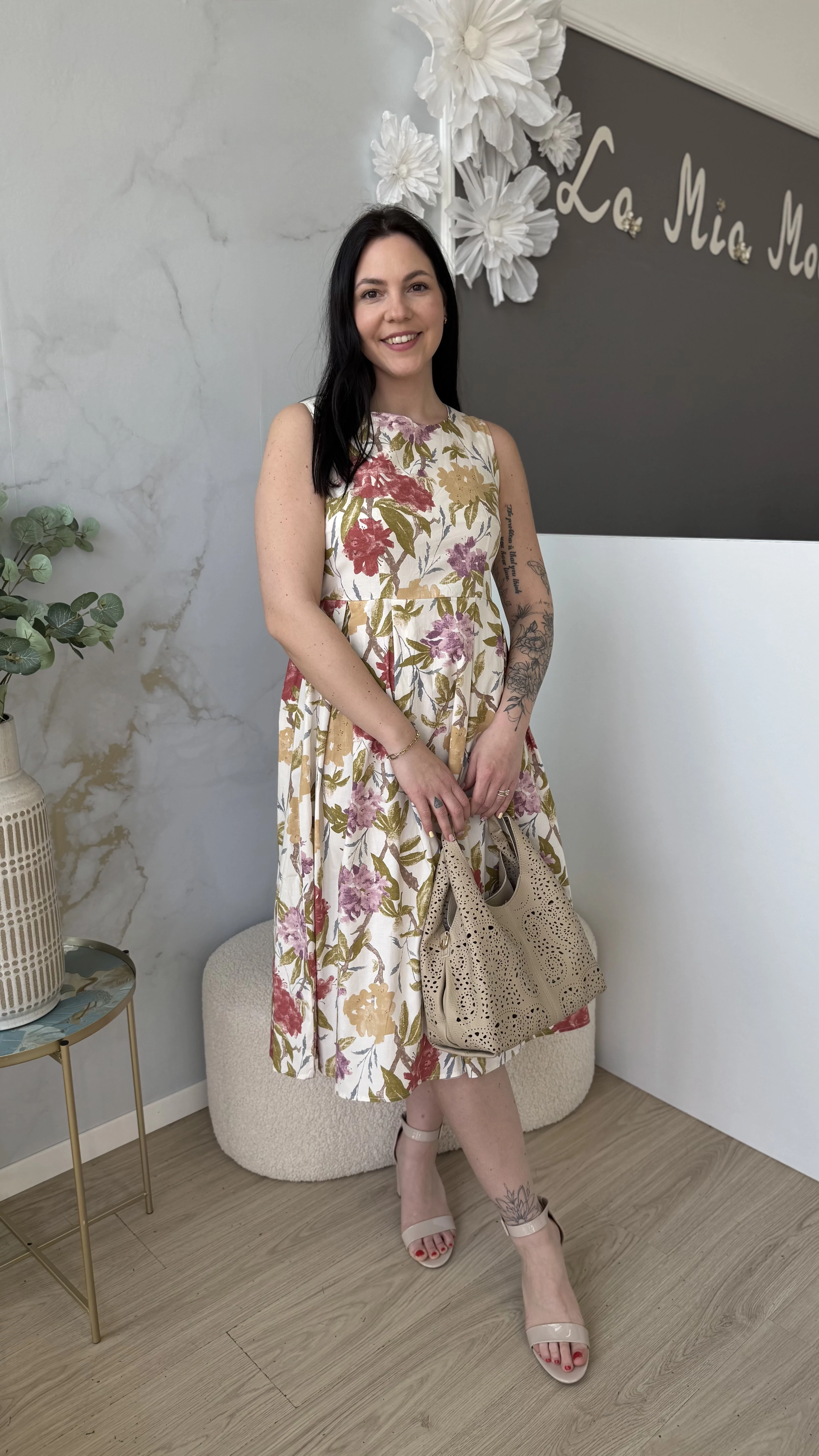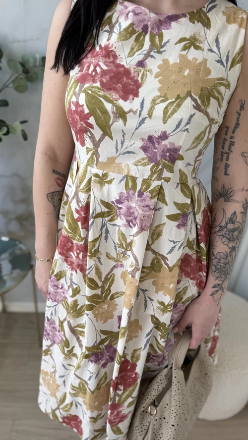 Ez az elegáns SweetM női ruha tökéletes választás nyári esti romantikus sétákhoz vagy különleges alkalmakra. A ruha ujjatlan kialakítású, mely könnyed és légies viseletet biztosít a melegebb napokon. A derékrésznél szűkebb fazon hangsúlyozza a nőies alakot, majd onnan bővülő szabása kényelmes mozgást tesz lehetővé, miközben finoman kihangsúlyozza a derekat. A bézs alapon megjelenő színes virágminták játékosan és frissen emelik ki a ruha romantikus hangulatát. Ez a darab ideális választás, ha stílusosan szeretnél megjelenni egy nyári estén, legyen szó sétáról vagy különféle eseményekről. Kényelmes, nőies és egyben egyedi – egy ruhadarab, amely minden alkalomra ragyogóan passzol.