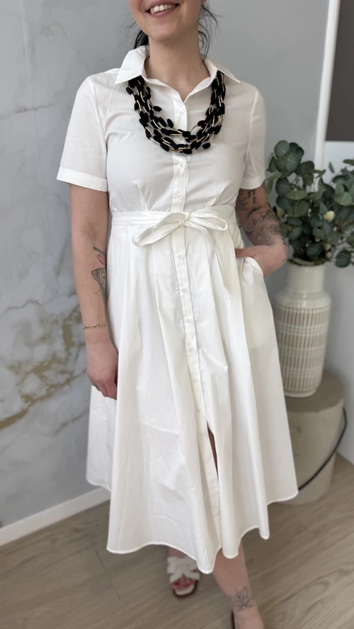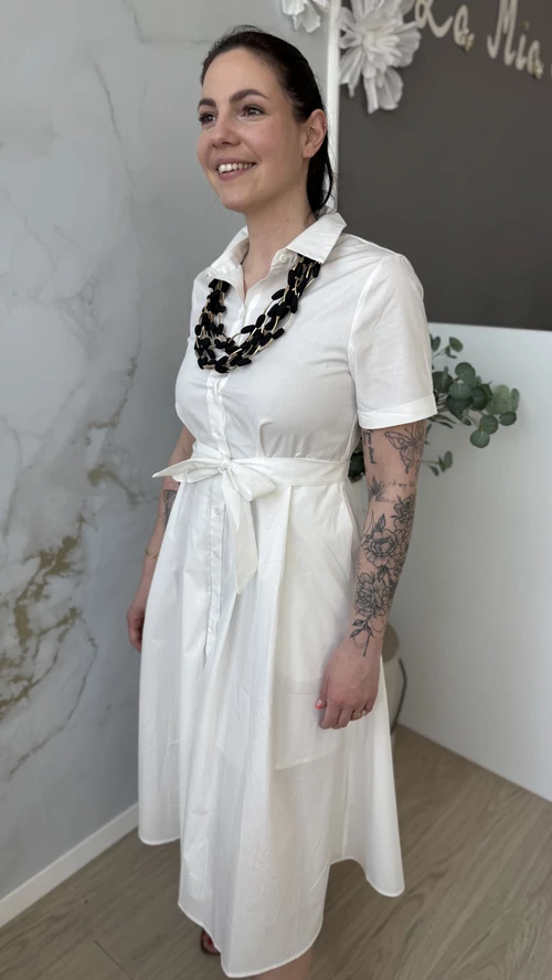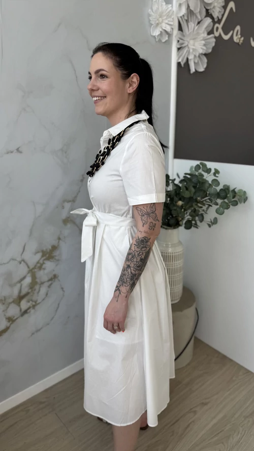 Stílusos és kényelmes választás a mindennapokra! Ez a női ruha fehér színben elérhető, amely feldobja megjelenésedet, legyen szó akár egy hétköznapi sétáról vagy különleges alkalomról. Puha, légáteresztő, pamutvászon, enyhén elasztikus anyagból készült, így egész nap kellemes viseletet biztosít. A szabása modern és nőies, kiemeli az alakot, miközben elegendő mozgásteret nyújt. Egyszerűen kombinálható különböző kiegészítőkkel, tökéletes darab a ruhatáradban. Válaszd ezt a ruhát, ha stílusos megjelenésre és kényelmes viseletre vágysz!