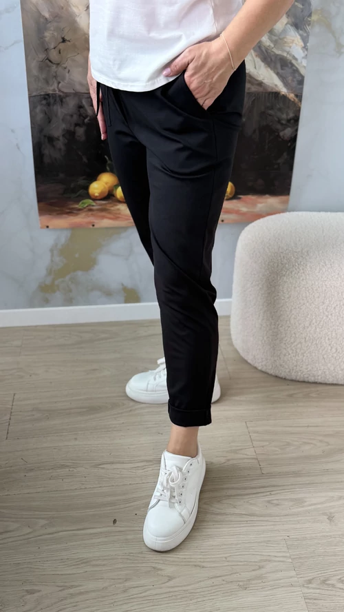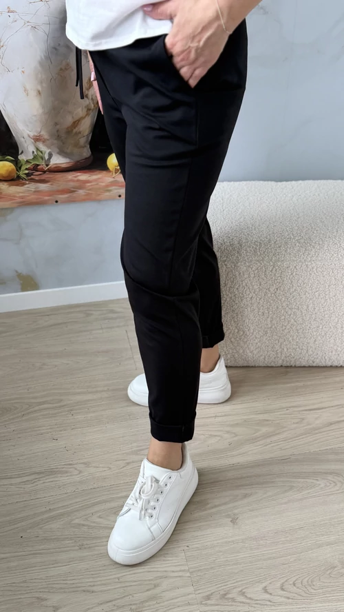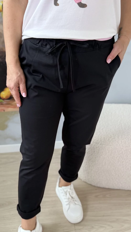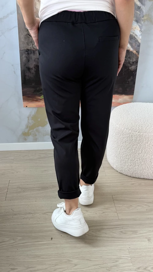 A Wendy nadrág tökéletes választás, ha kényelmes, mégis stílusos darabra vágysz. Fekete színben rendelhető, ami könnyen kombinálható a gardróbod bármelyik felsőjével. A kifinomult szabás,gumis derkérész és minőségi anyag garantálja, hogy egész nap jól érezd magad benne, legyen szó munkahelyről vagy szabadidős programról. Wendy blézerünkkel tökáletes szettet alkot! Ne habozz, légy te is trendi és magabiztos a Wendy nadrággal!